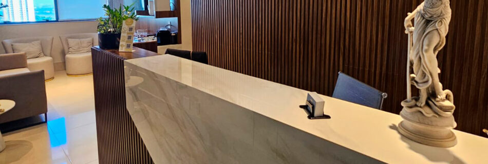 Projeto: Escritório de Advocacia Priscila CostaLocalização: São José dos Campos – SPAno da Obra: 2024Arquiteta: Mariana Lobo – @mariana_loboFotografia: Arquivo pessoalExecução: Di PietraAmbientes Atendidos: Hall de entradaMaterial utilizado: Lâmina ultracompacta Taj Mahal Siga nossa página no Instagram e veja mais projetos