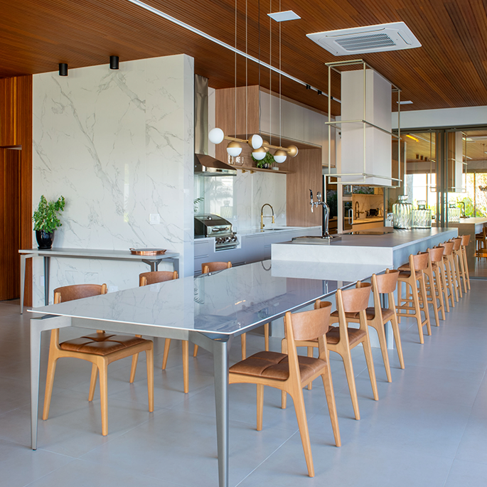 Os materiais sintéticos surgiram como alternativa às pedras naturais, mas hoje vão muito além disso. Com uma infinidade de cores, texturas sofisticadas e alta resistência, esses materiais conquistaram seu próprio espaço no design contemporâneo, oferecendo benefícios que superam os das rochas tradicionais, como absorção mínima de líquidos, versatilidade de aplicação e durabilidade excepcional.